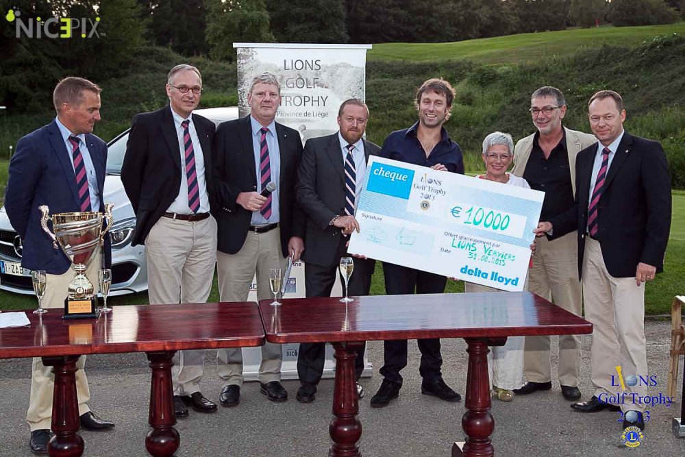 Le LIONS CLUB VERVIERS a pu contribuer par l’organisation du Tournoi Provincial de Golf 2013. A l’occasion de la finale à Henri-Chapelle le 07/09/2013, notre past-président Philippe Doyen a pu remettre un chèque de 10.000 euros au Dr Kalantari (oncologue) + son équipe et la représentante Vivie (10.000 € représentait 1/3 du budget de fonctionnement annuel)