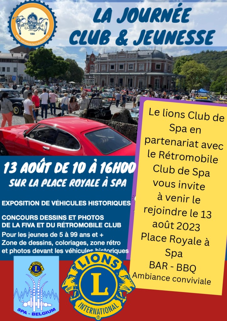 Les membres du Lions Club de Spa vous proposent de nous retrouver au sein de la belle ville de Spa ce dimanche 13 août 2023 à partir de 10h00 pour une organisation du Rétromobile Club de Spa en partenariat avec le Lions Club de Spa.