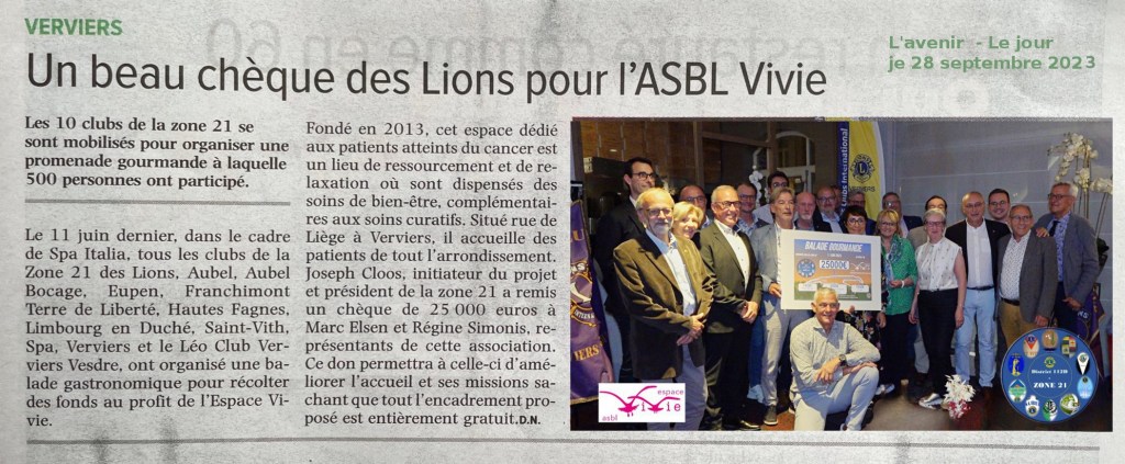 Dès les premiers jour le LIONS Club de Verviers a soutenu la nouvelle asbl