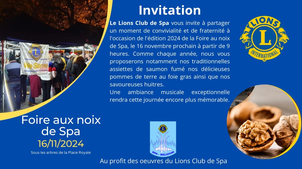 Spa – Foire St Hubert THEUX 02 nov 2024 – Foire aux noix SPA 16 nov 2024