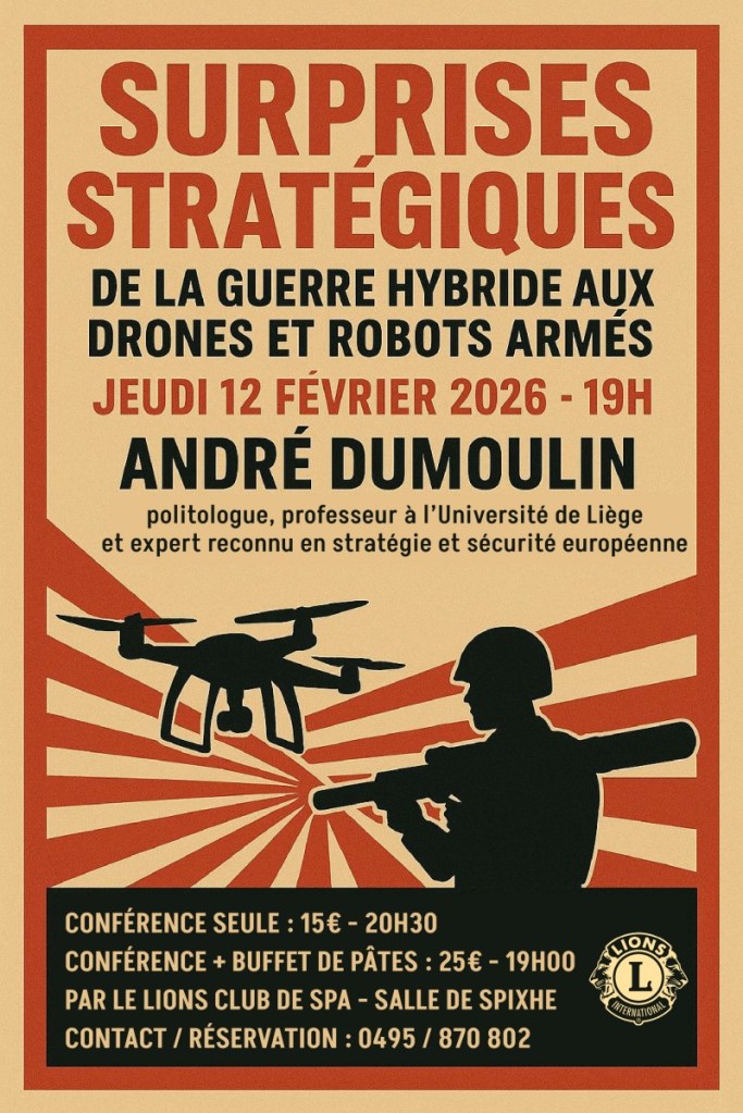 Spa – Conférence « Drones & Robots armés » André Dumoulin – Je 12 fév 2026 ricmag Non classé 2 janvier 2026 1 Minute J’aime chargement… Sur le même thème Publié par ricmag Voir tous les articles par ricmag Publié 2 janvier 2026