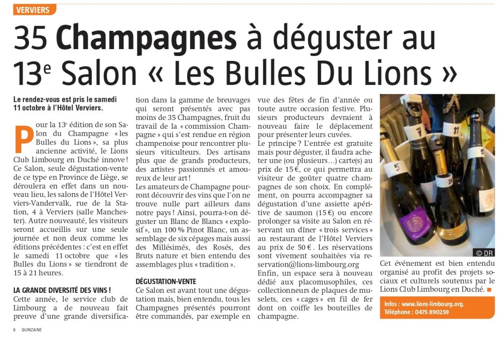 Limbourg en Duché – « Les Bulles Du Lions » – sa 11 oct 2025